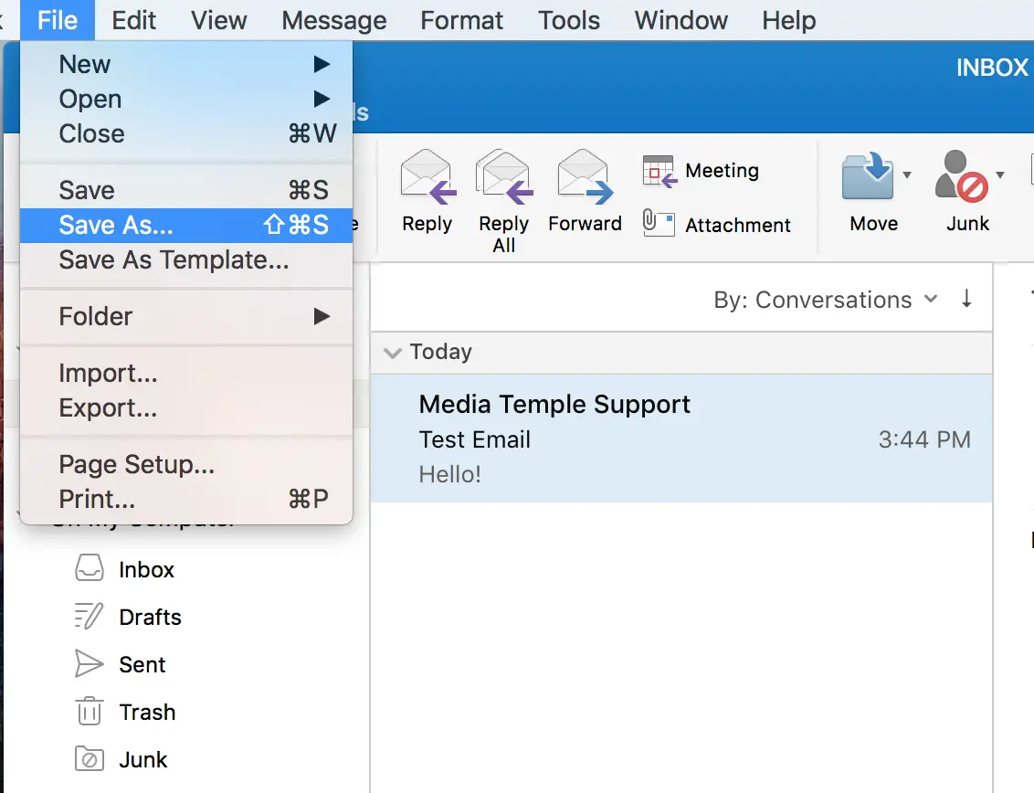 - Open the message you want to export.