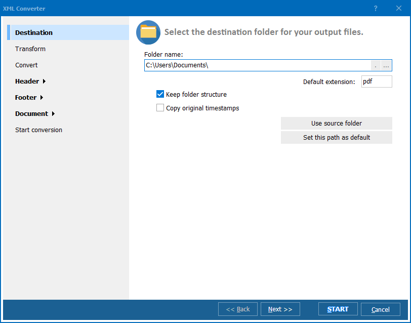 You are particularly well covered for options when choosing PDFs as an output format. Here are just a few of Total XML Converter's many outstanding PDF-specific features: